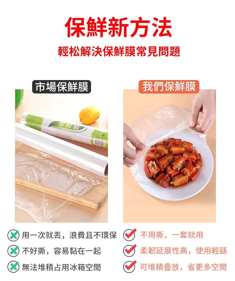 5分鐘前【感恩回饋】食品級鬆緊口鎖鮮膜套剩菜剩飯保鮮套一次性保鮮罩大小碗套通用 - 活動特惠(共發400隻 均價僅需$2.2/隻)免運 NT$899