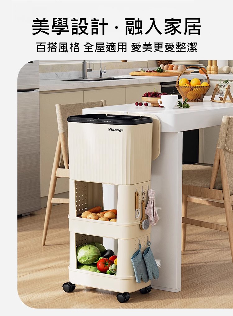 12分鐘前【不彎腰】家用可移動多功能置物垃圾桶 - 【超殺*贈20垃圾袋】1入組$279