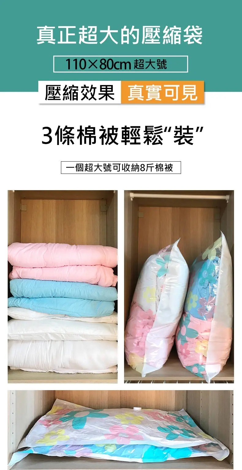 2分鐘前【居家神器】被子衣物整理真空壓縮收納袋+配電動氣壓手泵 - 特惠3入組,共33件套+電動抽氣泵*3 NT$1598