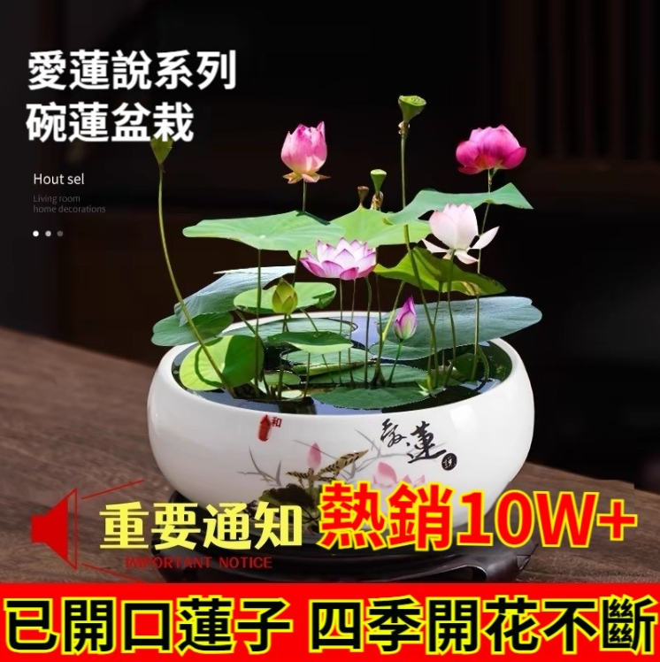 5分鐘前『招財轉運』水培碗蓮 - ★★★店主推薦【50粒+碗蓮專用營養液2+養殖盆】【綠葉+莊根+促芽+催花】,開爆了!僅需NT$1088